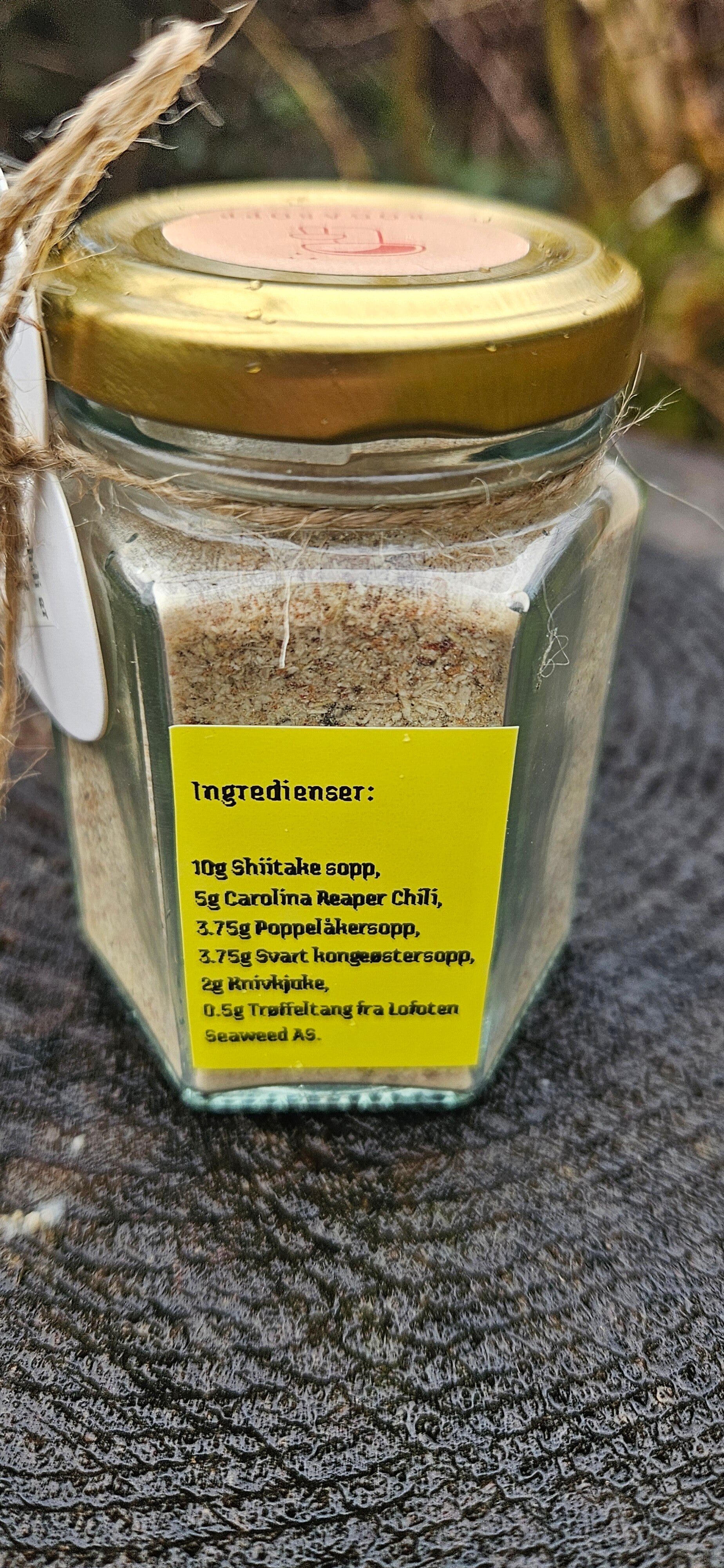 Vi har også tilført en del av havet i denne, nemlig Trøffeltang fra Lofoten Seaweed AS. Trøffeltangen tilfører mer smak og gir en god lukt.
